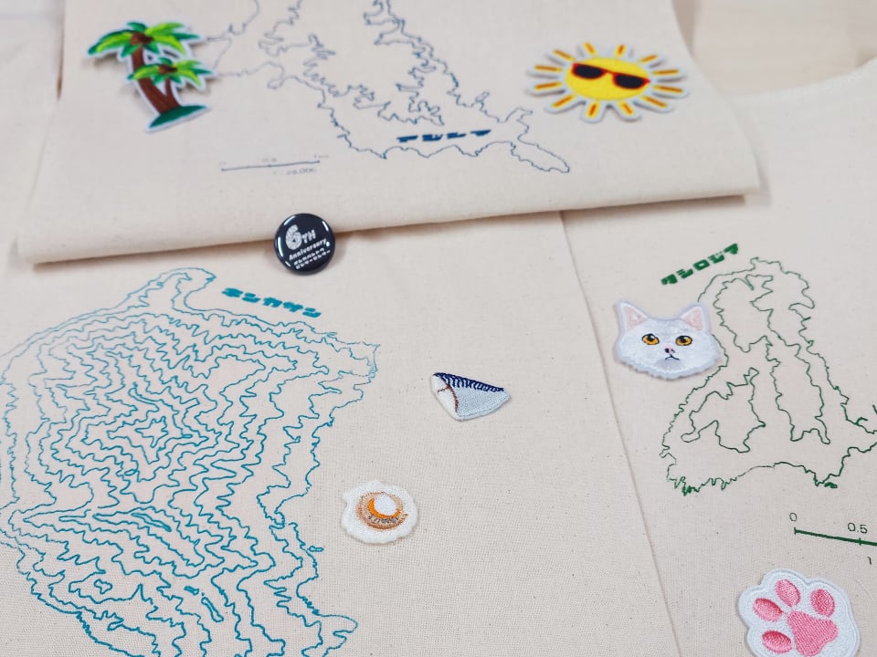牡鹿半島の3つの離島がプリントされたバッグを、かわいいアイロンワッペンや
